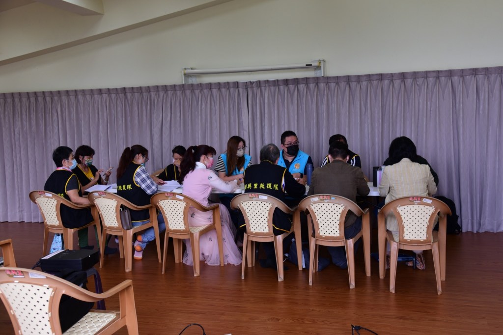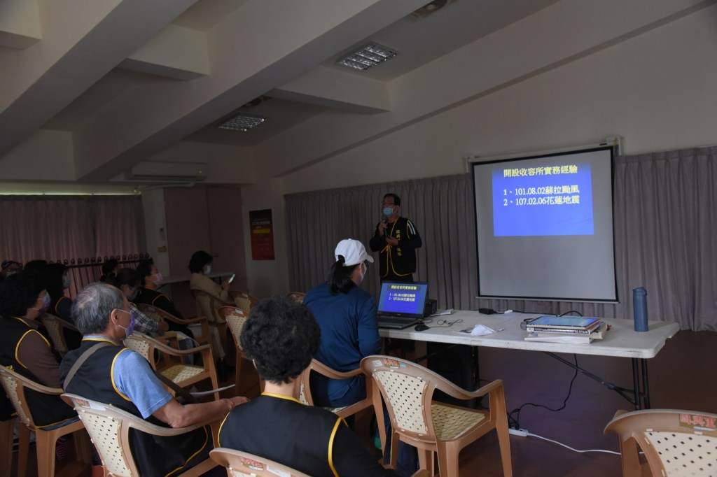 教育課程進行前,先由蕭子蔚課長主持防災志工組長會議,之後由具紅十字會教練資歷的廖伯睿里長分享0206強震時花蓮縣紅十字會開設收容所的實務經驗,慈濟基金會專員黃玉琪談避難收容所整備,蔡在宗博士則專業指導實兵演練腳本推演。參與今日課程的對象包括國興里韌性社區志工及社區居民,11月14日將針對災害發生避難收容兵棋推演。