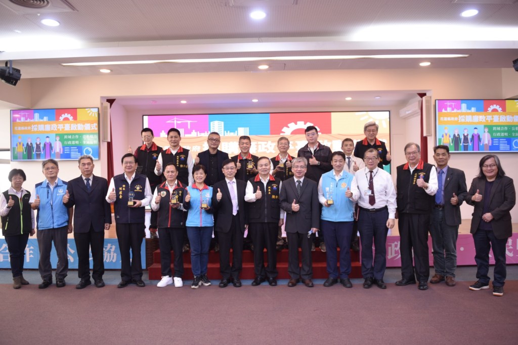 這次儀式由副縣長顏新章、縣府代理秘書長饒忠、法務部廉政署署長莊榮松、花蓮地方檢察署檢察長蔡宗熙、法務部調查局花蓮縣調查站主任陳慧明、花蓮縣審計室主任林慶文、國立東華大學副校長徐輝明、經濟部水利署第九河川局局長王國樑、行政院農業委員會林務局花蓮林區管理處處長黃群策、台灣電力股份有限公司花蓮區營業處處長李淑芬、花蓮縣文化局局長吳勁毅、花蓮縣政府建設處處長鄧子榆、社會處處長陳加富、花蓮縣政府政風處處長葉清燊與林洲民建築師共同見證廉政平臺的正式啟動,場面隆重盛大。