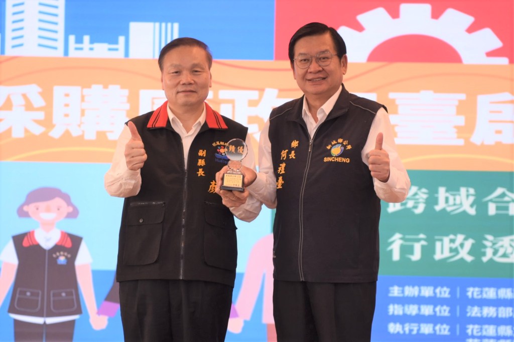 另這次儀式亦與行政暨研考處合作,就花蓮縣111年工程採購作業評鑑績優單位(消防局、客家事務處、花蓮市公所、吉安鄉公所、新城鄉公所、萬榮鄉公所),由副縣長顏新章公開表揚,藉此引領花蓮縣公共工程品質更加精進,共同造福花蓮縣民。