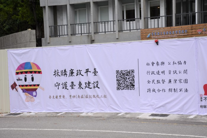 萌爆廉政寶寶首次出現臺東施工圍籬 翻轉宣導廉政平臺及反賄選嚴肅刻板印象