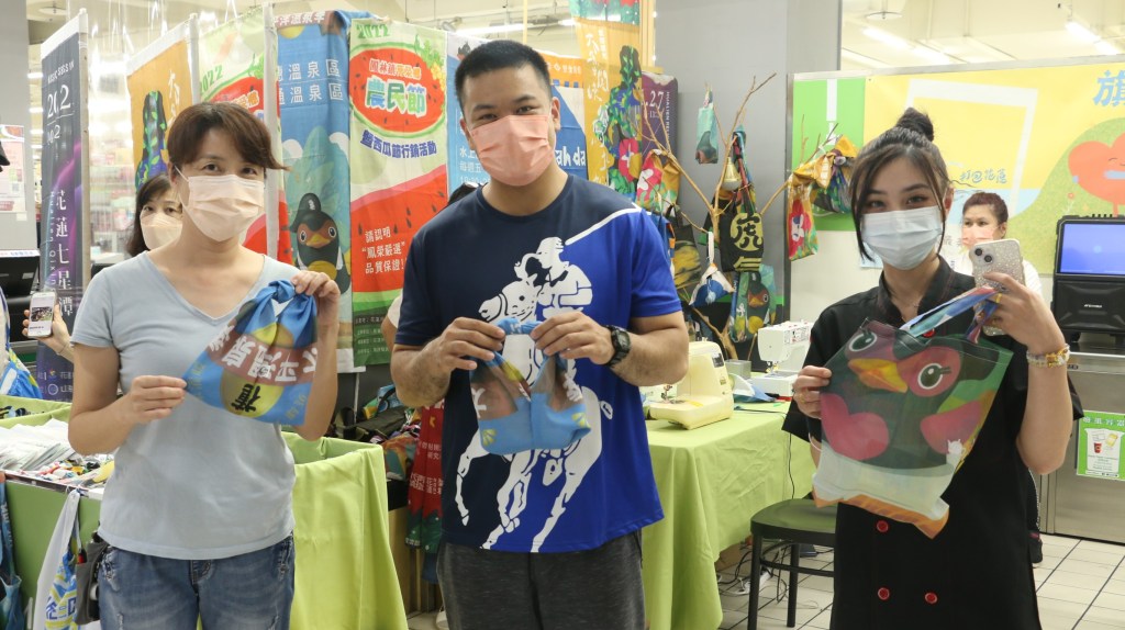 花蓮縣環境保護局與花蓮縣政府青年發展中心攜手,結合文創店家「98裡作X 台灣靚好」將回收的廣告旗幟再製成環保袋,不僅實踐解決廣告廢棄物之環保議題,更扶持婦女培力加工製作,結合由「打包花蓮」循環共創團隊,培力職人在地設計Made in Hualien供應鏈支援,讓這些花蓮城鄉活動結束宣傳後的廣告旗幟不再淪為廢棄物,轉換成為另一種看得見的花蓮魅力。