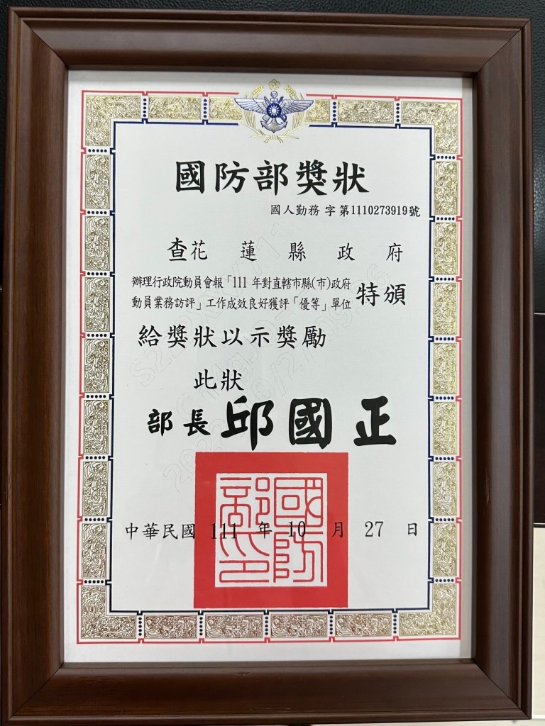 行政院動員會報日前公布「111年直轄市、縣(市)政府動員業務訪評成效報告」,花蓮縣政府榮獲「優等」殊榮,創下歷年最佳成績。縣長徐榛蔚感謝中央的肯定,並勉勵縣府團隊持續精進、全力以赴,動員工作「沒有最好、只有更好」,以成為國防及維護人民生命財產最堅實的後盾為目標。動員業務訪評由行政院動員會報副執行秘書戴天鵬率中央各部會評鑑小組委員,檢視縣府各項動員業務書面資料及實地抽訪花蓮市自強國小防空避難設施、港天宮戰時收容避難處所、花蓮市第五聯里物資經濟動員配售站等三處所,縣府全體同仁均認真準備,詳實回應。 戴天鵬於訪評綜合座談給予優缺點說明及建議,並表示感謝縣府各項動員業務單位局處首長的重視,親自出席訪談會議,同時透過各單位書面資料與承辦人的詳細解說,清楚瞭解縣府年度作為及各項創新辦理內容。