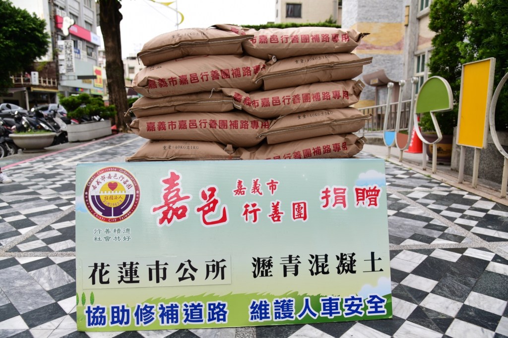 嘉義市嘉邑行善團日前捐一千包的瀝青包給花蓮市公所,市長魏嘉賢感謝徐文志理事長以及理監事會成員,他說,這批瀝青包將做為簡易修補路面使用,各里的路面若有小面積坑洞,里長或里民可洽詢市公所建設課派員處理。