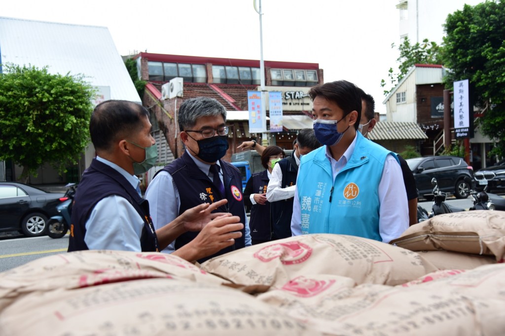 15日上午,徐文志理事長偕同常務監事王金章、常務理事呂金標、總幹事郭靜宜以及鄭慶榮組長、陳慶榕主任等人到花蓮市公所捐贈瀝青包,由魏嘉賢市長與主任秘書翁美華、建設課長徐國城代表接受。