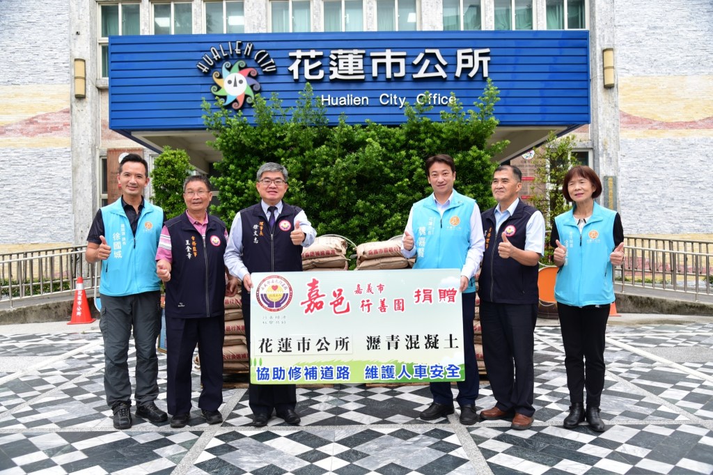 魏嘉賢市長則感謝徐文志理事長等人特地從嘉義前來花蓮贈送瀝青包給花蓮市公所。他說,社區包括里長在內都曾向市公所反映,希望公所協助路面修補的問題,大面積的坑洞交由開口廠商,但範圍不大的坑洞則可以瀝青包先行處理,避免坑洞因為重車輾壓而擴大,因此感謝嘉邑行善團,也謝謝善眾涓滴成河,每人每月100元小額捐款給嘉邑行善團,發揮造橋鋪路的功效。