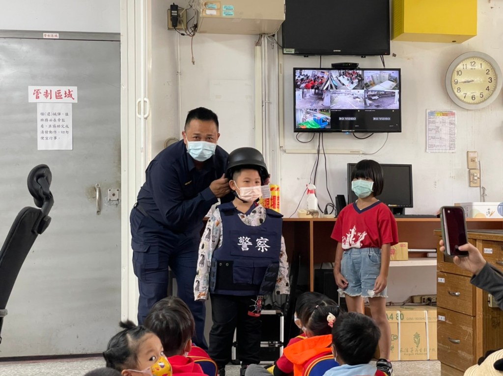 首先,警員郭駿育向幼童介紹警察制服及勤務帽,所有幼童聚精會神看著警察哥哥的介紹,從學會辨識警察身分開始;接著是幼童最期待的體驗時間,郭員貼心幫幼童們穿戴反光背心、防彈頭盔、肩燈、臂盾等裝備,現場歡笑聲連連,小朋友們個個搶著親身體驗,此時場景讓平時看似嚴肅的派出所增添歡笑的氣氛;接著副所長邱金雄向幼童介紹無線電、指揮棒、酒精感知器等勤務裝備,進而說明警察是如何於道路上盤查民眾,進而以運用酒測器來示範查獲民眾酒後駕車情境,藉機叮囑小朋友千萬不能酒後駕車,也請學童返家後向家長宣導,切勿心存僥倖;最後藉由這次的機會,更宣導基本法律知識及交通路權識別,如基本的紅燈停、綠燈行、過馬路要走斑馬線等觀念,讓學童留下深刻印象。
