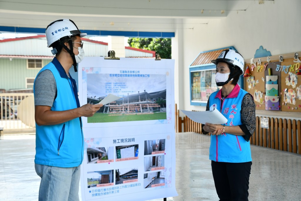 教職養成的鄉長游淑貞為建構鄉立幼兒園的安全學習環境,積極向上級單位爭取各項改善工程建設經費並配合編列鄉預算,共投入近1,400萬元,進行建築結構擴柱補強、溝蓋改善、增設遊戲沙坑、外牆景觀維護、設施設備汰舊換新等工程。鄉長游淑貞在建設課長吳印浴陪同下親自多次前往會勘,掌握每階段工程進度,同時為施工期間全園師生的安全性嚴格把關。