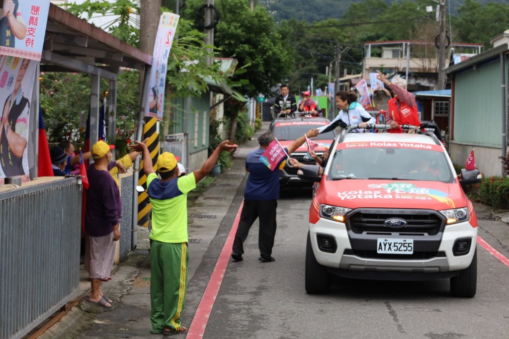 「我們一定會贏!」Kolas沿途鼓勵民眾,民眾也紛紛放鞭炮、揮舞旗幟支持。在田裡工作的民眾也對Kolas比出3號手勢,凍蒜聲不間斷。直到下午仍有民眾自發加入車隊一起掃街。