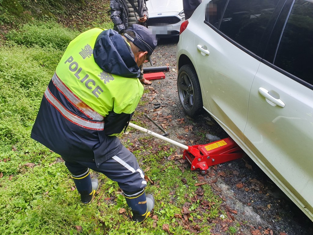 合歡派出所表示,昨日警員賴彼得上山後,就接獲2件遊客分別在台8線120K愚公峭壁、134K慈恩東側發生拋錨意外,當時甫上山的警員賴彼得還因剛趕上山而有點頭昏腦脹,一聽有遊客受困,立即攜帶相關工具前往救援。