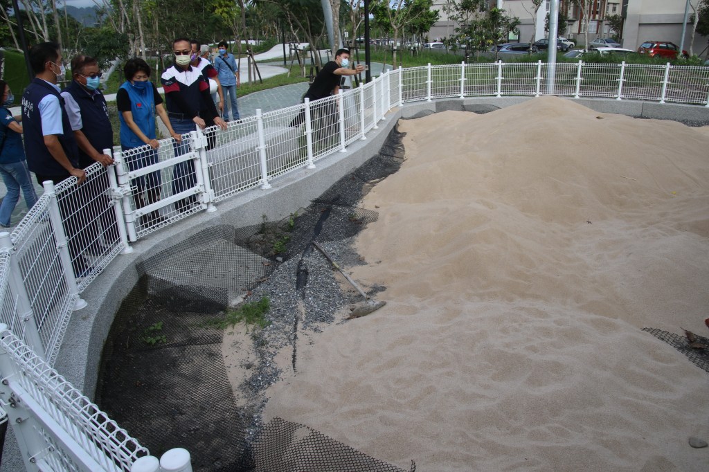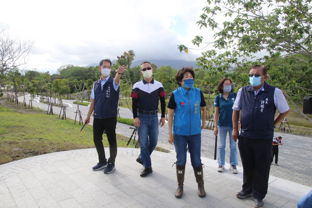 「臺東建設持續推動不能停!」縣長饒慶鈴關心位在體育場旁臺東縣立兒童運動公園和康樂站前廣場工程進度,今(28)日選後第一日上班日恢復縣政公開行程即前往視察,饒慶鈴表示,兒童運動公園是縣內第一座旗艦型兒童特色公園,採分段設計施工,預計112年4月啟用;而康樂站前廣場與幸福住宅綠地已接近完工,預計年底前開放,新闢的綠地和設施將成為親子休憩的絕佳環境,縣府持續建設,逐步落實臺東成為全齡友善的宜居城市。