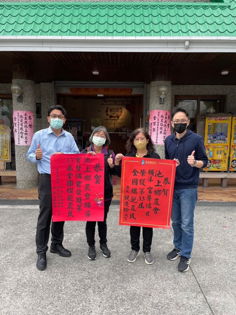 臺東農業近期好事不斷,首先是臺東縣農會參加農委會2022青農領航全國青農團隊合作個案經驗分享大賽獲佳績,接著日前農委會公布第33屆全國模範農民選拔,池上鄉官聲燐先生榮獲全國模範農民,縣長饒慶鈴特別指示農業處張貼紅榜表達恭賀,並感謝農會及農友在專業領域上的努力,為臺東農業獲得佳績。