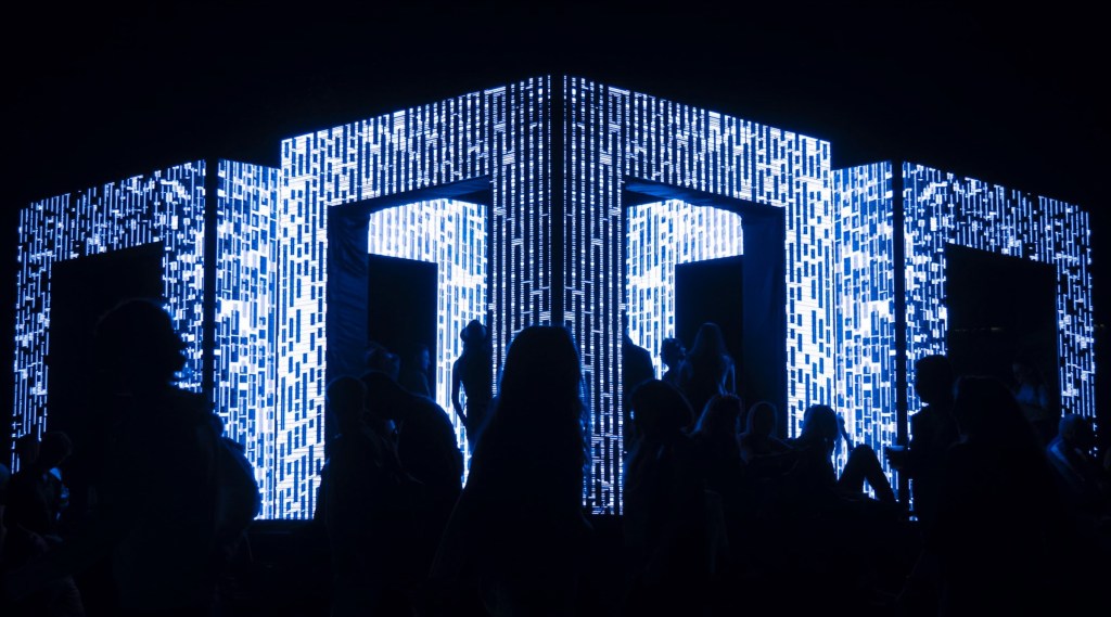 而澳洲聲光藝術家Kit Webster所創作的《原生》,則是充滿酷炫動感,鑲嵌著70萬顆LED燈的三座燈光拱⾨,隨著動靜相間的音樂律動,發展出流動與無限變化的造型、色彩及空間錯視,連續10多分鐘的動態作品,讓視覺的真實與虛幻在強烈節奏中不斷對話、激盪。同時為了此次在台東的展出,藝術家特別在作品中加入台東的色彩與元素,讓台東也跟著國際聲光藝術作品發光。文化處進一步指出,縣府加碼將知本展場延伸至台東市區,於「台東舊站特區」展出3件聲光藝術作品,展期自111年12月3日起至112年2月12日,陪伴民眾歡度聖誕節、跨年倒數、農曆春節,及元宵節至寒假結束,敬請民眾引頸期盼。有關活動相關資訊請見「台東光祭」臉書(https://www.facebook.com/TaitungLightFestival/),作品及交通資訊見「台東光祭」官網(https://www.facebook.com/TaitungLightFestival/)。