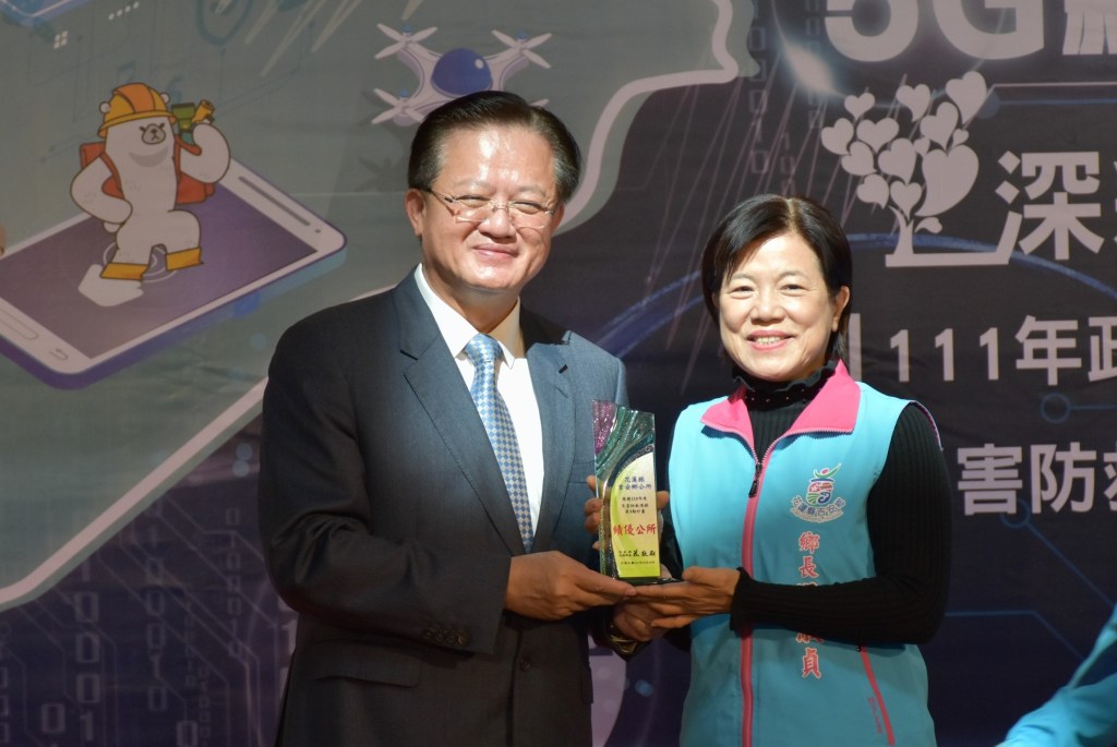內政部消防署於南投消防訓練中心舉行「111年政府科技計畫暨科技防救災成果展」,結合辦理「災害防救深耕第3期計畫」成果發表會暨全國績優單位頒獎典禮,由消防署長蕭煥章頒發獎座表揚,鄉長游淑貞親赴受獎,同時逐一參與現場實體展示總成果展,期待吸取各縣市推動之優良經驗,將寶貴資訊執行方針帶回,以續精進能量。