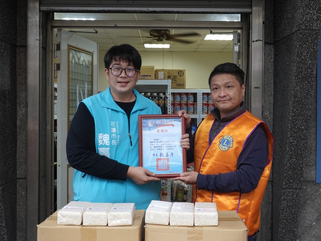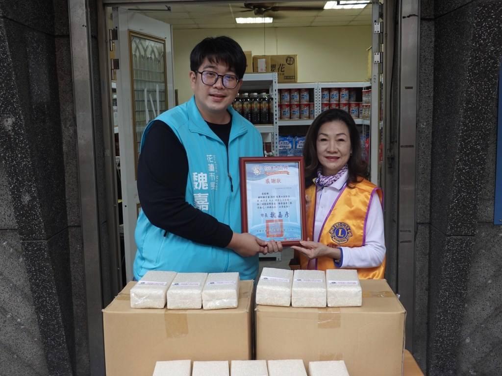 國際獅子會300F區第七分區主席程秀蘭日前帶領蓮花、欣辰、東陽等三個獅子會作公益,捐白米給花蓮市公所愛花蓮實物銀行,落實國際獅子會五大志業,救濟飢餓,感謝花蓮市長魏嘉彥提供便利的平台。