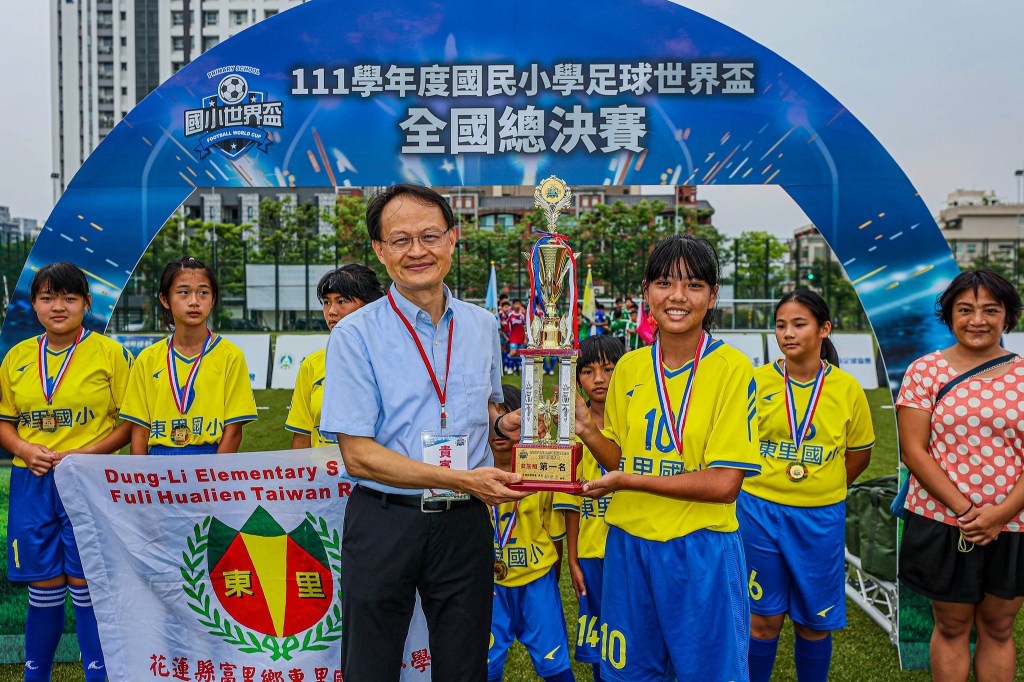 江東成鄉長恭喜東里國小勇奪國小世界盃足球賽女生組冠軍,能獲得全國冠軍實屬不易,在偏鄉小校人數不足之下,全校國小生僅66人,面對全國各大學校的競爭,還能有如此優異表現,可見學校用心,也期許孩子們持續為東里、為富里、為花蓮爭光,另在8月份代表台灣參加國際邀請賽,縣府與鄉公所都會全力支持,讓學校及選手們無後顧之憂。