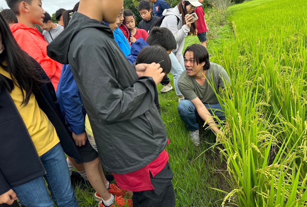 桃園「諾瓦中小學暨附設幼兒園」的高年級生今日搭車來到池上,同學們實際下田觀察有機稻作的生態環境;同學們對現代科技導入傳統農業栽培都大開眼界,中午師生們自己並嘗試製作「池上便當」,美味可口的米飯和菜色讓小朋友每個都吃光光直呼過癮。