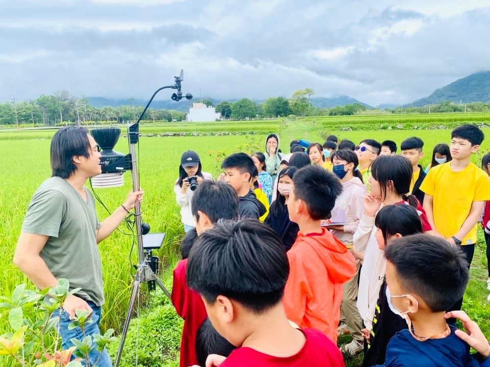 魏瑞廷也詳細介紹其田間所生產的「高雄139」水稻所採用「區塊鏈」技術,包含有其田間管理過程上傳至雲端和不可篡改的特性打開通路市場;有的外國人更是關透過米袋包裝上的QR Code瞭解認識種植方式和田間出現豐富的生態環境。田裏的水量和微氣象的變化攸關稻作生長的條件,魏瑞廷更是鉅細靡遺的教導給同學和老師們。