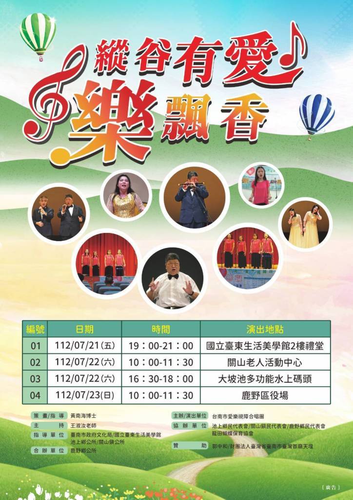 「縱谷有愛樂飄香」的靈感來自池上林建宏鄉長,對營造社區、活化資源與讓社會共好的意念,此次演出擴大連結國立臺東生活美學館、關山鎮公所、鹿野鄉公所和池上鄉公所,自21日起到23日進行四場演出。