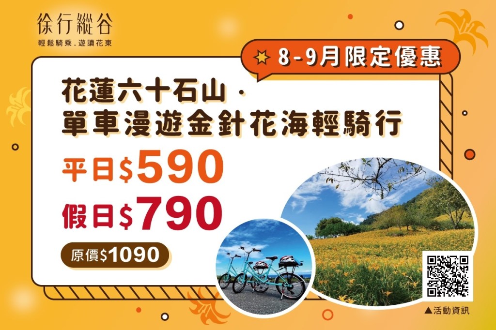 「花蓮六十石山・單車漫遊金針花海輕旅行」半日遊超值優惠中:https://www.tripbaa.com/travel/S2023061217000371/