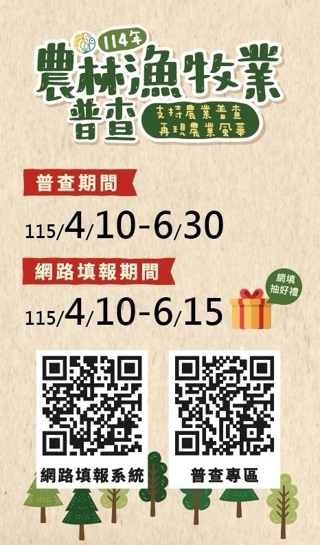 全國114年農林漁牧業普查4月10日正式開跑 請受訪戶踴躍配合網路填報