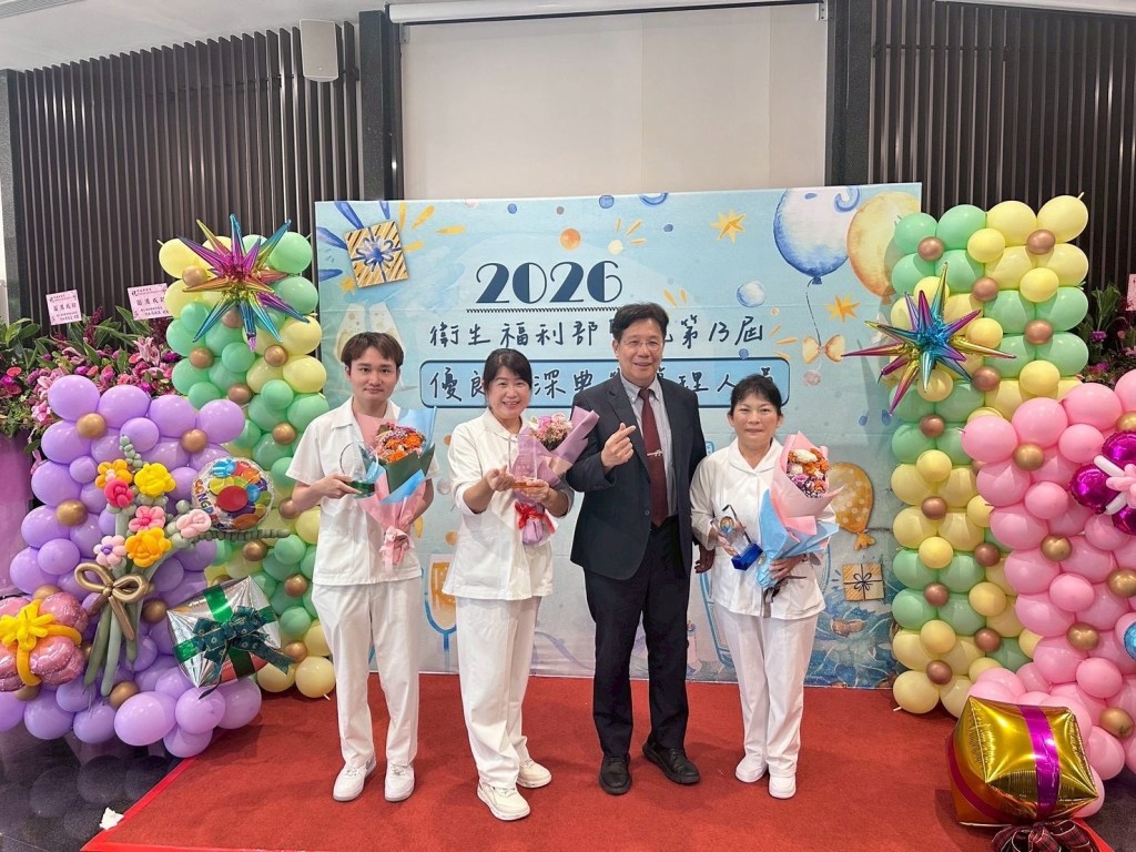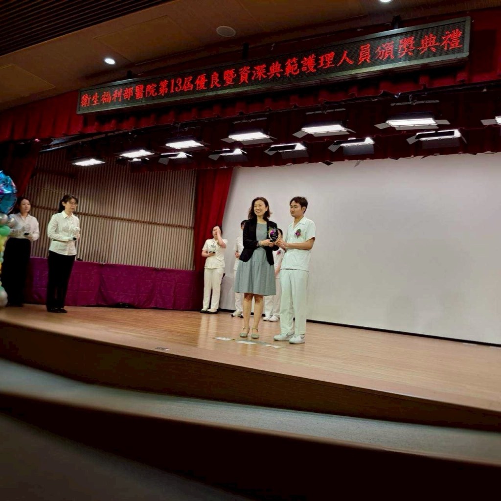 衛生福利部舉辦「第十三屆優良暨資深典範護理人員頒獎典禮」,表彰在醫療與健康照護領域中表現卓越的護理專業人員。玉里醫院此次共榮獲三項殊榮,包括由護理科徐玉英督導長獲得「資深典範獎」、萬寧院區黃佩琪護理長榮獲「優良獎」,以及謝東諺護理師獲頒「閃亮新人獎」,展現團隊整體實力與專業價值。衛福部政務次長林靜儀與醫福會林慶豐執行長也蒞臨頒發此項殊榮。