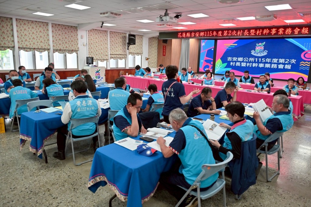 吉安鄉115年第二季村長暨村幹事業務會報於(30)日召開,鄉長游淑貞率領各課室所主管與19村村長、村幹事共商鄉政發展,凝聚共識落實「路平、燈亮、水溝通」等基礎建設,共構宜居、幸福鄉城。