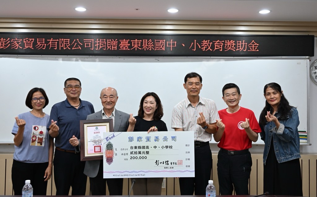 彭家貿易公司與台東縣議會吳秀華議長於4月30日下午3時,在台東縣議會第一會議室舉行「教育獎助金捐贈儀式」,本次縣內5所學校獲得獎助金,彭家貿易公司由劉啟聰先生代表彭以信董事長出席捐贈儀式,劉啟聰先表示:彭以信董事長長期關懷教育、體育、醫療,善盡社會責任,關心偏鄉,回饋地方的精神。獎助金挹注各學校後將可供學子更多學習資源與添購教學消關設備,提升學習環境。