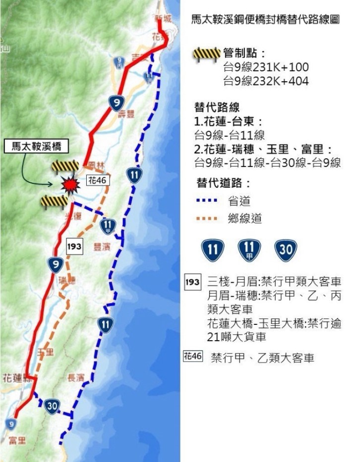 花蓮縣堰塞湖防災演練4月30日登場 馬太鞍溪便橋實施交通管制及細胞簡訊測試